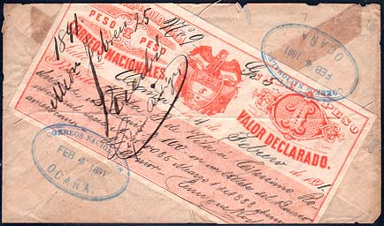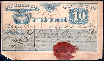 コロンビアの書留切手(cubierta)の実逓カバーです。