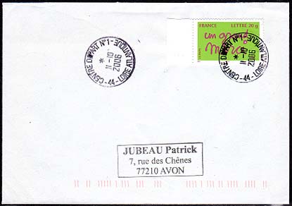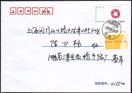 印面に目打のある切手(実逓カバー)
