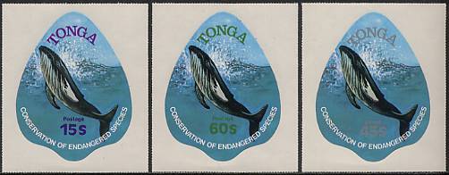 クジラの保護をPRするために発行された切手で、トンガから1977年と1978年に発行されています。