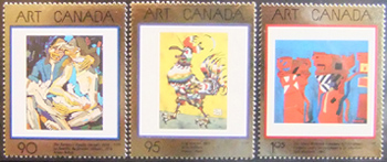 プラチナ箔の切手は、"ART CANADA"シリーズの一部として、1998年から2002年にかけて発行されました。これらの切手の周囲の部分にプラチナ箔が使われています。