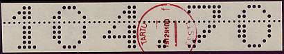 エストニアのタルト(Tartu)市で1991年に発行された暫定切手です。この年の12月に切手が不足したため、穿孔(パンチ穴)で額面を打ち抜いた紙テープにタルト郵便局の消印を押したものを臨時の切手として発行して急場をしのぎました。この臨時切手は、全部で16種の額面が発行され、約2,500セットが存在するということです。なお、これらはミッヘルカタログに掲載されています。