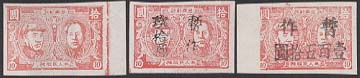 These stamps were issued by "Andong Post" in North East area of China which was known as one of "Liberated Areas". They are printed on the reverse side of "cover of letter sheet booklet".